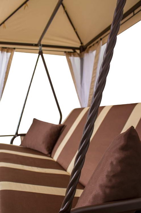 Предлагаем тент-крышу с антимоскитной сеткой на садовые качели-беседку Премиум 76 от производителя садовой мебели Арно (Кострома). Данная модель является доработанной версией качелей беседок предыдущих годов, в основу каркаса взята витая труба диаметром 76 мм, москитная сетка отделена от тента.